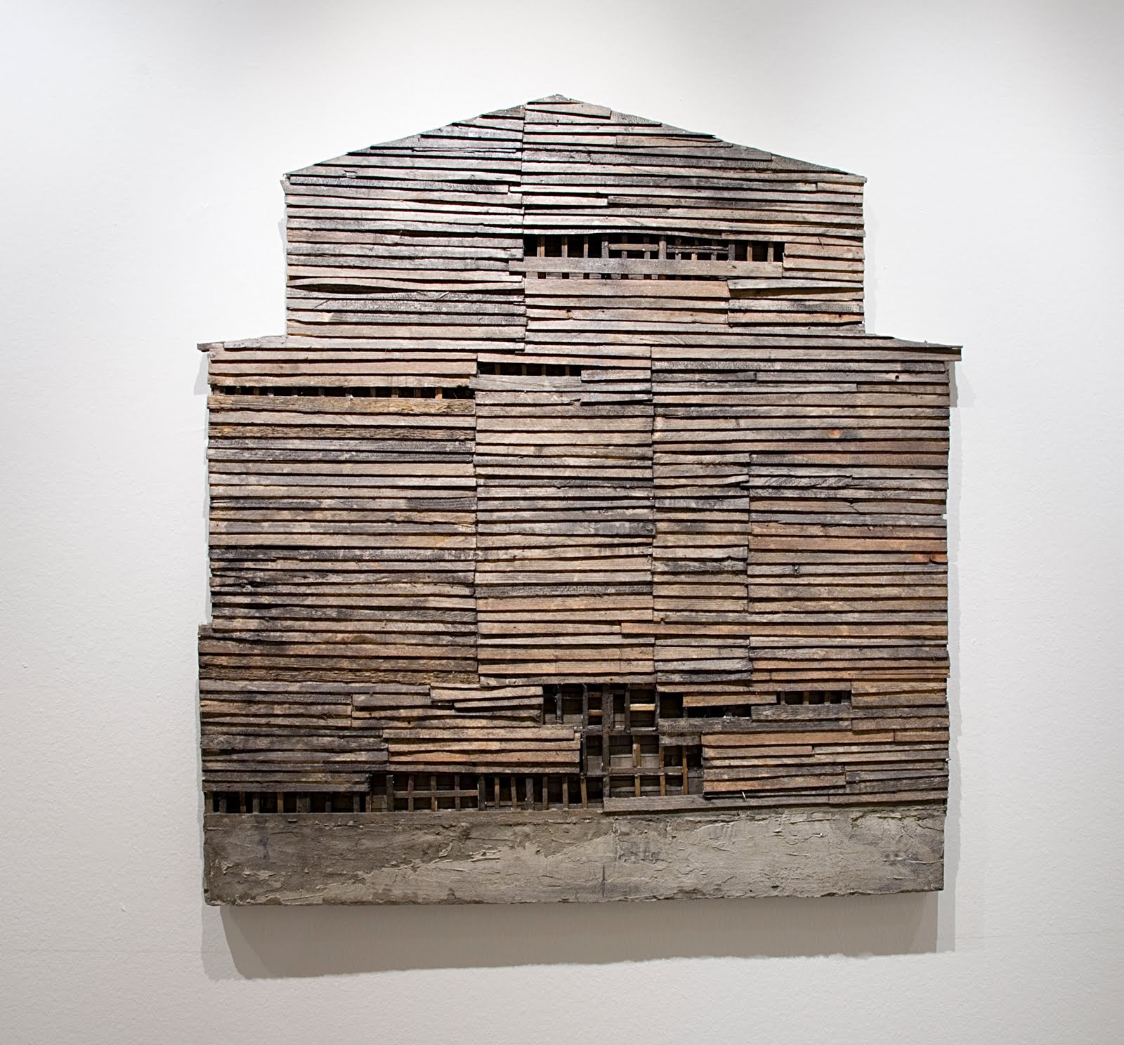 Car park operators entangled in Mafia-like structures aggressively occupy both public and private areas to expand their economic interests. As a result, more parking space is created at the cost of personal outdoor space. Sometimes reinforced huts made out of corrugated iron or concrete develop which are parasitically annexed to existing structures and have become a recurring feature of the urban environment. The hides come from Hürtgen Forest near Aachen, the artist’s hometown. The models, which are shown as a group for the first time in this exhibition, demonstrate the different ways in which these raised hides are built. Even if certain shared structural features can be made out, the details of the platform and the different interior furnishings testify to individual subtleties. The same forest also used to contain one-man bunkers. These curious buildings were used in World War II to protect one or two people during air raids. Now almost completely disappeared, a few have been preserved as listed buildings. As accurate reproductions, Stephan Mörsch’s models don’t just demonstrate the structures of peripheral architecture but also develop an atmospheric denseness. Half-open doors and windows grant a glimpse inside shady interiors. And the scale of 1:10 enables visitors to enter the empty shells of abandoned buildings, revive them – and hence occupy our space inside them. The juxtaposition of architect-designed houses and creative DIY, of icons and improvised shelters that confront us everywhere begs the question of whether the DIY store, the new dictate of form, is replacing modernistic traditions. Are official and private construction drifting farther apart? Who do certain spaces be–long to – and who controls them?